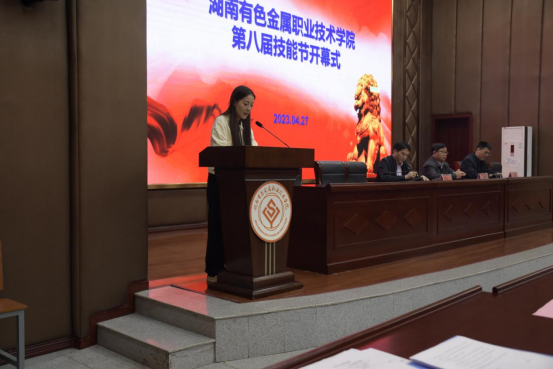 学院副院长胡拥军对技能节作了指导性讲话。他着重强调三点:一是技能节要树立劳动光荣、技能宝贵,创造伟大的浓厚氛围。他指出高职教育就是为了培养高技能高效能的人才,“职业教育大有可为”。应建立完善创新型技能技能人才的成才路径。由“单一技能-综合技能-复杂技能”转变,培养符合企业需求的复合型人才。二是要培养创新型技术技能人才的土壤,建立“校赛-省赛-国赛-世赛”的梯队培养机制。学院应将教学项目对接竞赛项目,建立以赛促学、以赛促教、以赛促改的良性机制。三是要立志成为创新型技术技能人才。号召同学们技能报国、真正做到心中有梦、手中有活、眼中有光、脚下有路。最后他宣布,湖南有色金属职业技术学院第八届技能节顺利开幕。