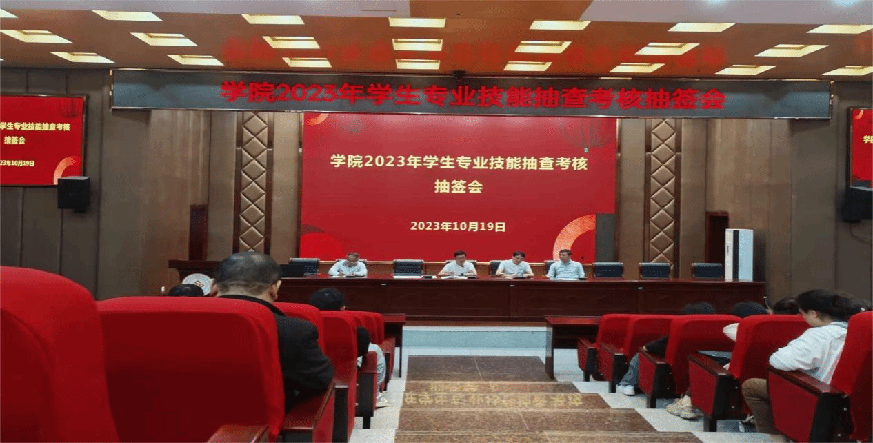 2023年10月19日下午,在学院图书馆学术报告厅召开2023年院级学生专业技能抽查考核抽签会,学院副院长胡拥军、各职能部门主要负责人、各教学系部主要负责人、教师代表、学生代表,共100余人参加,会议由教务处处长陆柏林主持。